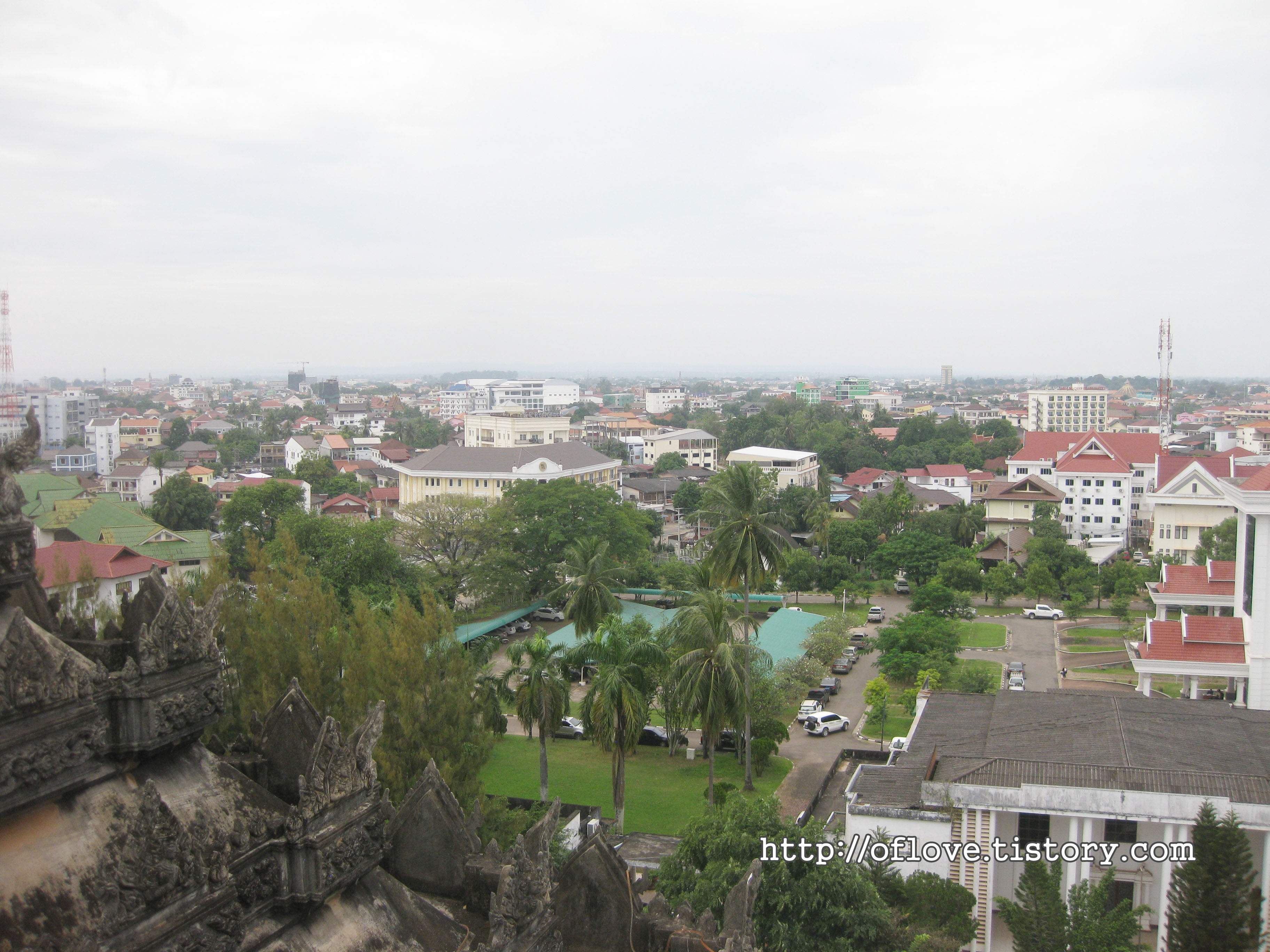 꼭대기로 올라오니 비엔티안 시내가 한 눈에 보인다