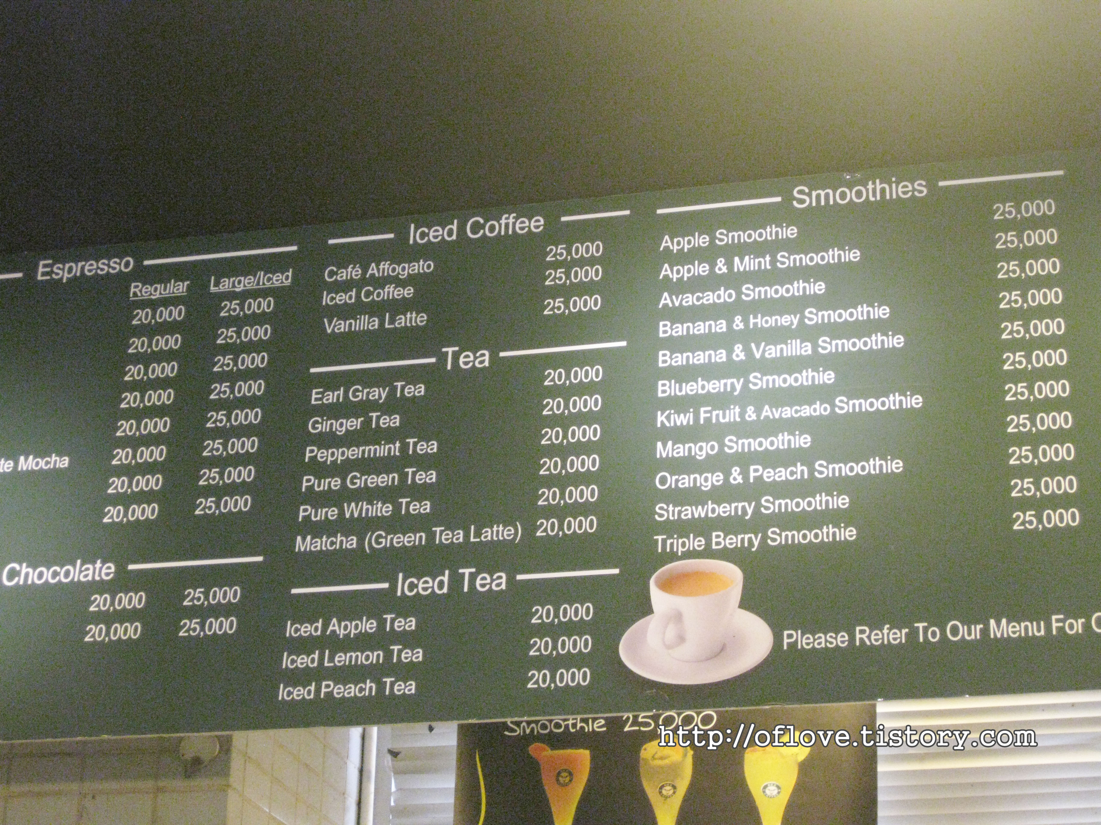 메뉴 1개에 2천원에서 3천원