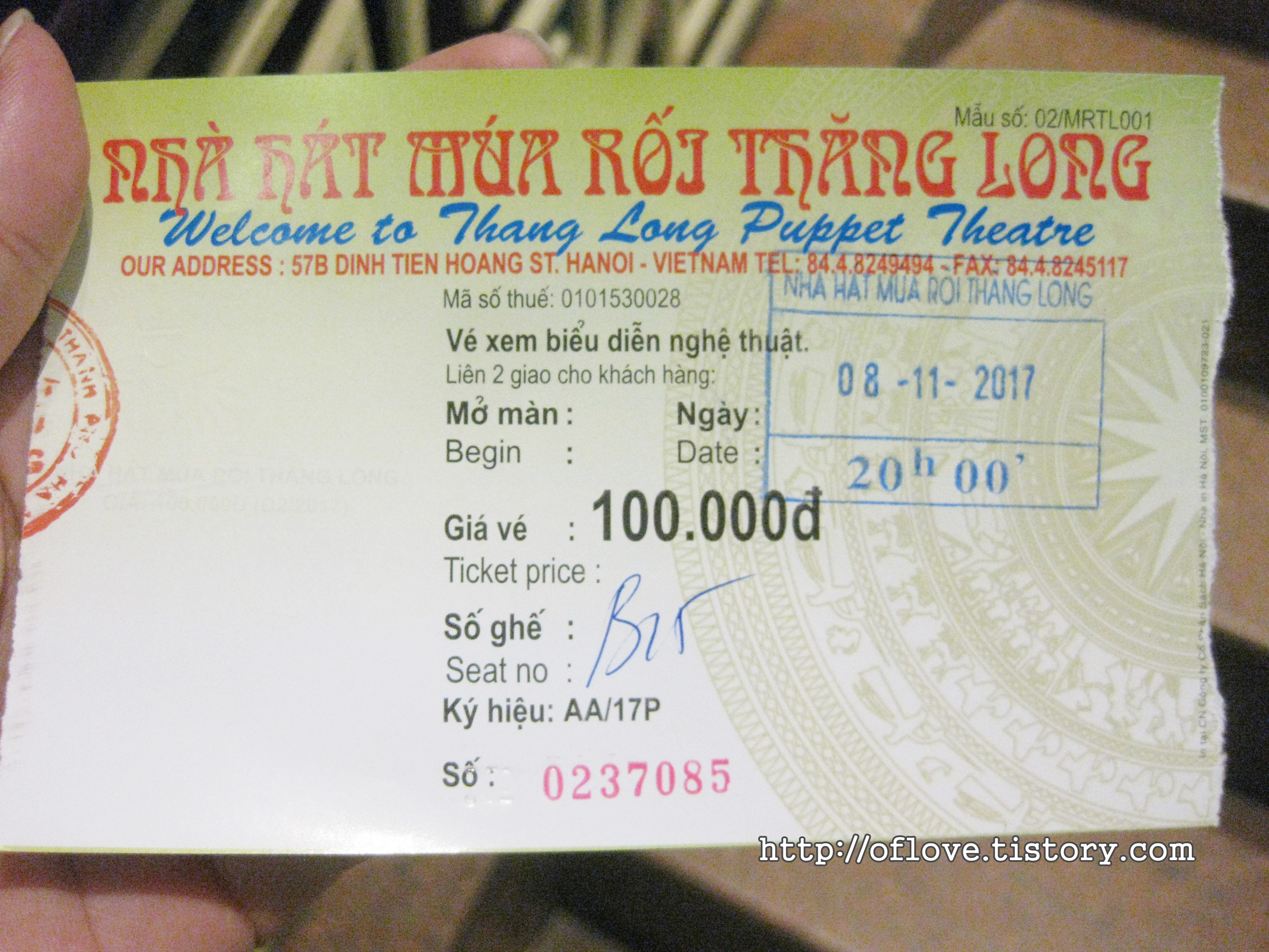 티켓 가격은 10만동, 우리 돈으로 5천원