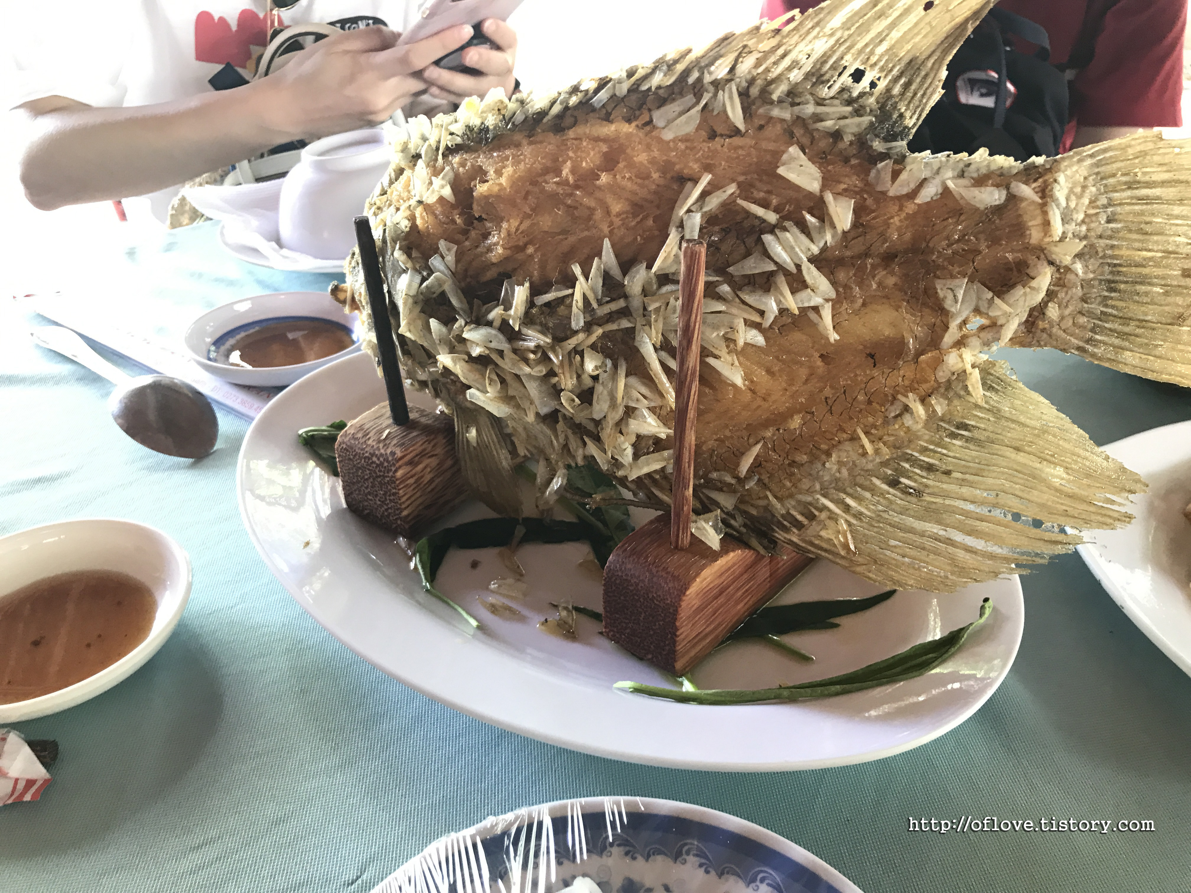 큼직한 민물 생선을 비늘도 안 떼고 그대로 튀긴 거 같다