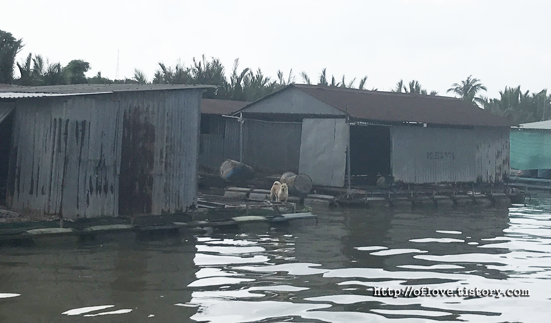 철판으로 지어진 베트남 메콩강의 수상가옥들