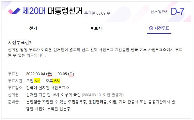 사전 선거일은 3월4일 금요일과 3월5일 토요일
