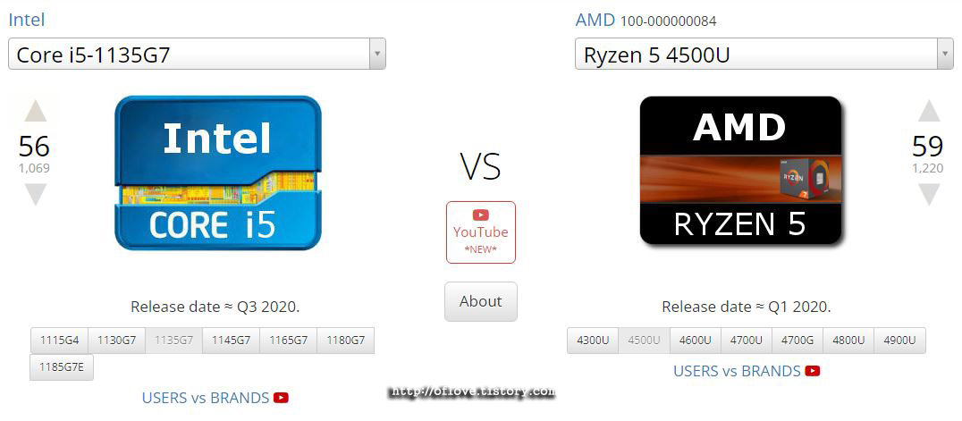 Ryzen 5 4500U VS 인텔 I5-1135G7