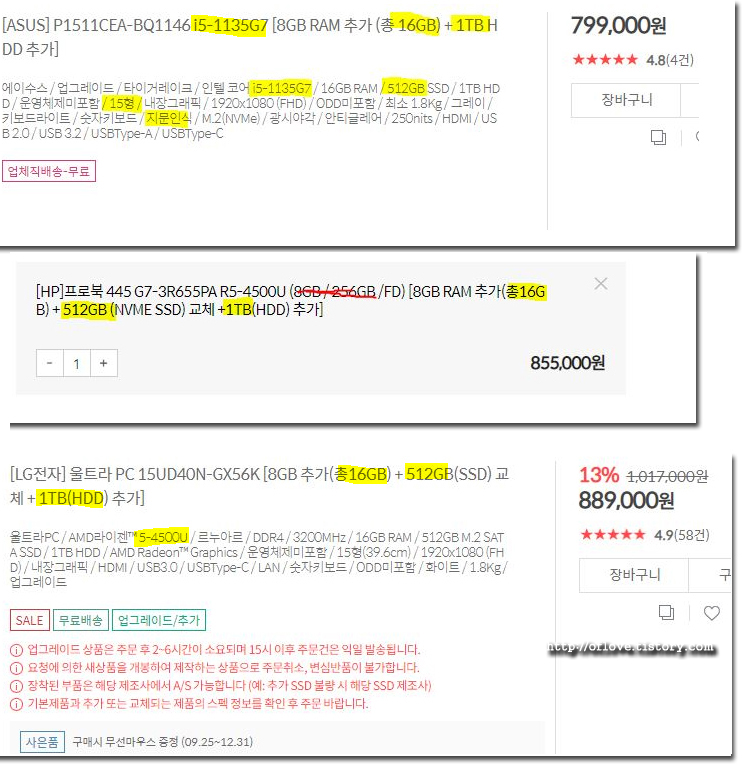구매 전에 최후까지 고민했던 3개의 노트북 모델들